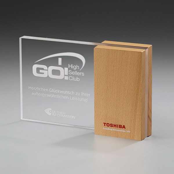 This Award is made of Wood (beech) & Plexiglass.