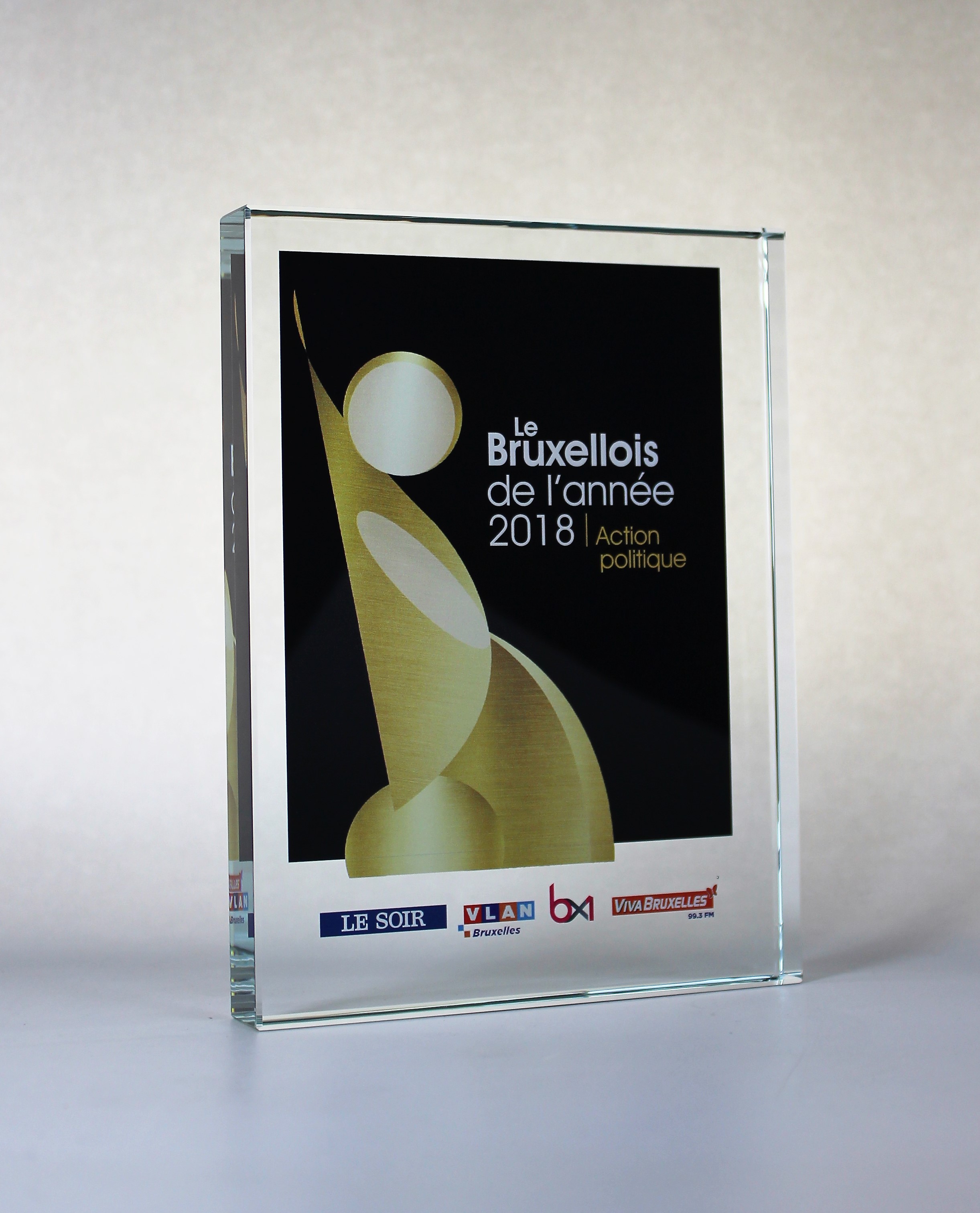 Bruxellois de l’année Custom made award #crystal #uvprint #awardshop Why Toulet – Van Bael? Always a lay-out Belgian Family Company Easy access Fast quote and delivery Unlimited possibilities Value for Money
