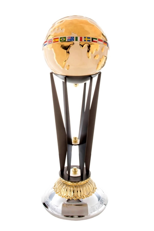 Award with fine ceramic beige color, enamelled and gold finishes.