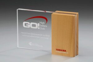 This Award is made of Wood (beech) & Plexiglass.